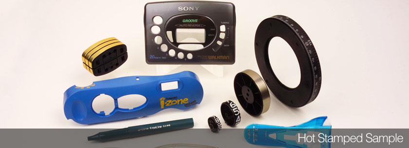 On plastic surfaces, hot stamping using silicone rubber dies gives a "printed look" vs a "branded look". Very fine details to broad areas coverage is possible even on the same die. If a metallic or wood grain marking is desired, hot stamping is still the only known decorating process that can achieve this on plastic, metal or wood. Our silicone rubbers are also good for stamping on the new generation of tough plastics and also on polycarbonate and acrylic.